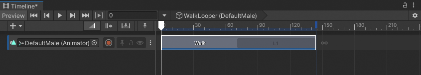 For example, an Animation clip is set to loop and its duration is just over twice longer than its source asset. This results in the Walk clip with one full loop and one partial loop.