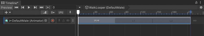 For example, an Animation clip is set to loop and its duration is just over twice longer than its source asset. This results in the Walk clip with one full loop and one partial loop.